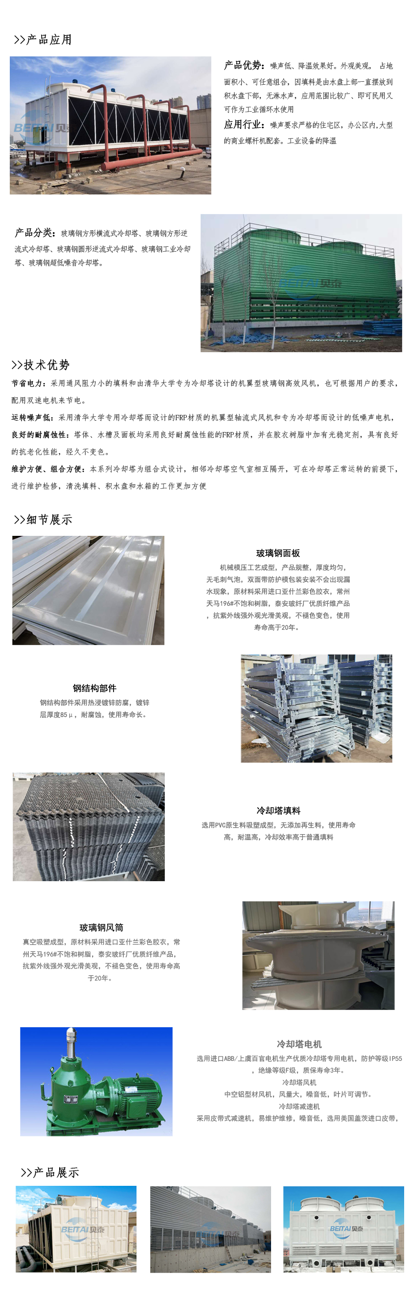“中小型玻璃纖維增強(qiáng)塑料冷卻塔”規(guī)定的熱力性能及噪聲數(shù)值進(jìn)行設(shè)計(jì)的新型橫流式玻璃鋼冷卻塔。