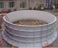 由于凈化和電解車間介質(zhì)溫度較高且腐蝕性非常強,因而在與內(nèi)表面接觸的膠衣采用33#耐高溫、耐腐蝕的樹脂,中間層采用耐高溫197#乙烯基樹脂,外表面則采用耐紫外線的美國亞什蘭膠衣。其手糊方法將嚴(yán)格按照《手糊法玻璃鋼設(shè)備設(shè)計技術(shù)條件》進(jìn)行。