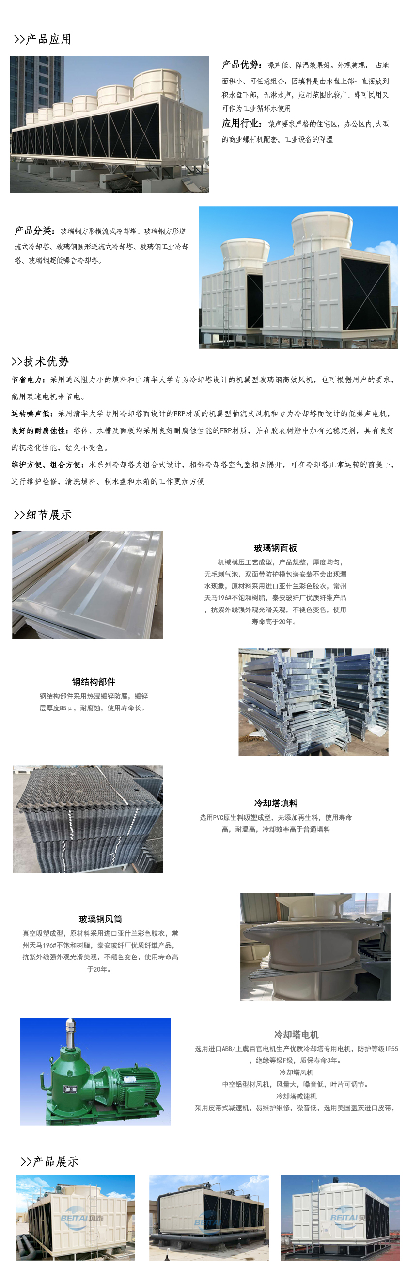 “中小型玻璃纖維增強塑料冷卻塔”規(guī)定的熱力性能及噪聲數(shù)值進行設(shè)計的新型橫流式玻璃鋼冷卻塔。